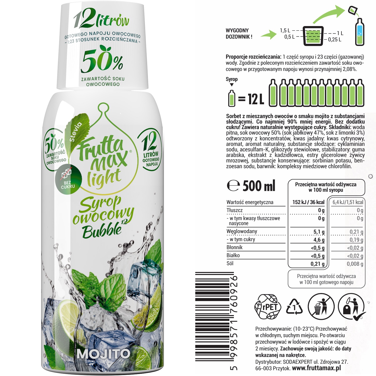 Syrop FruttaMax o smaku MOJITO LIGHT – STEVIA 500 ml 50% owoców !